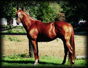 Santo". Caramel bay with large star and flaxen tail. Very